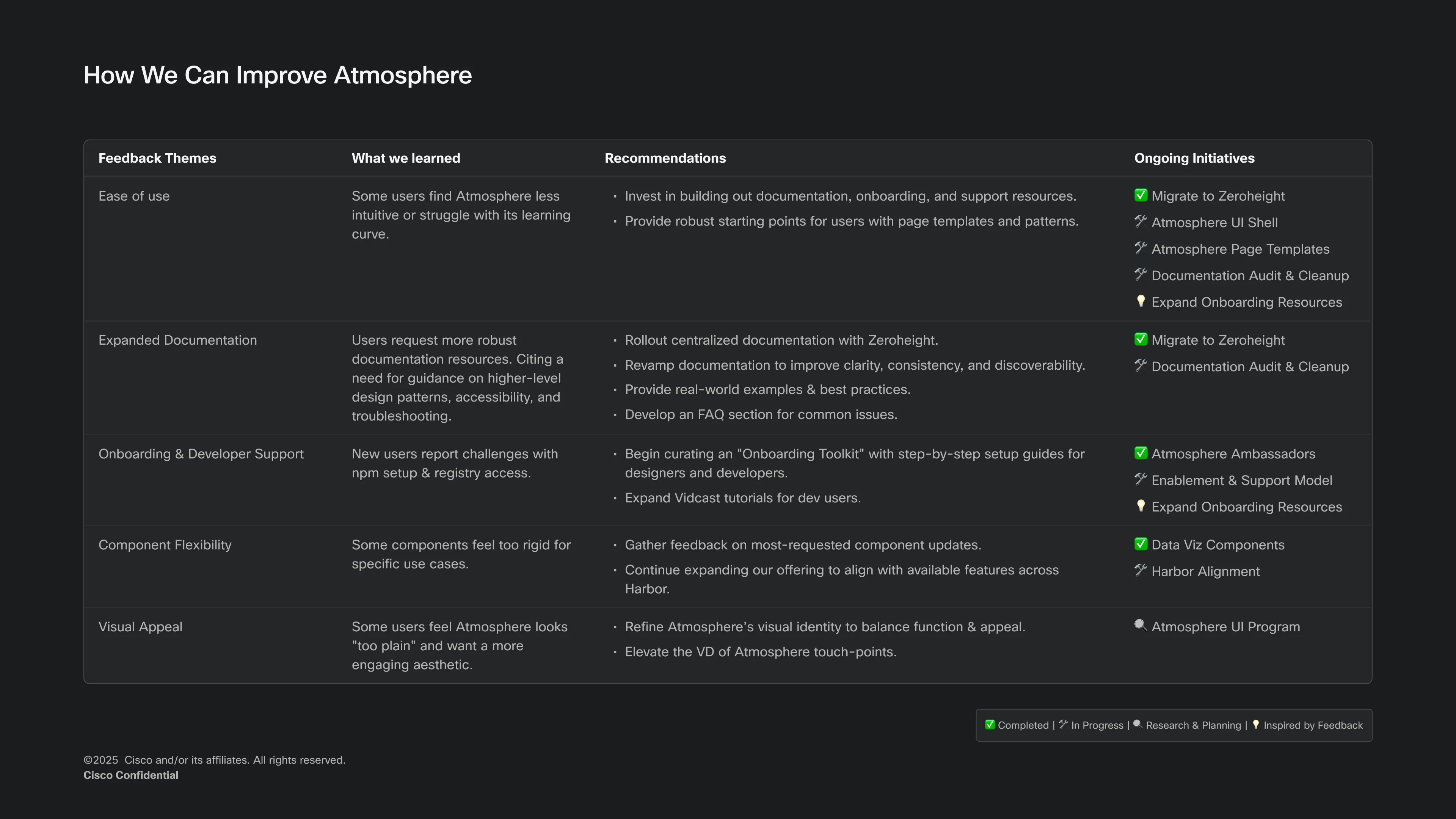 The investment appears to be paying off. Since starting our documentation overhaul efforts, we’ve seen a 16% decrease in support requests, and a 38% reduction in time spent resolving said requests. While correlation isn’t causation, the data suggests that our improved documentation resources are reducing our support overhead by driving self-service adoption and support. Lastly, it’s helping us prepare for what’s next. As our team explores meaningful ways to integrate AI into the design system, our documentation will be the foundation for training internal LLMs and agent-based workflows.