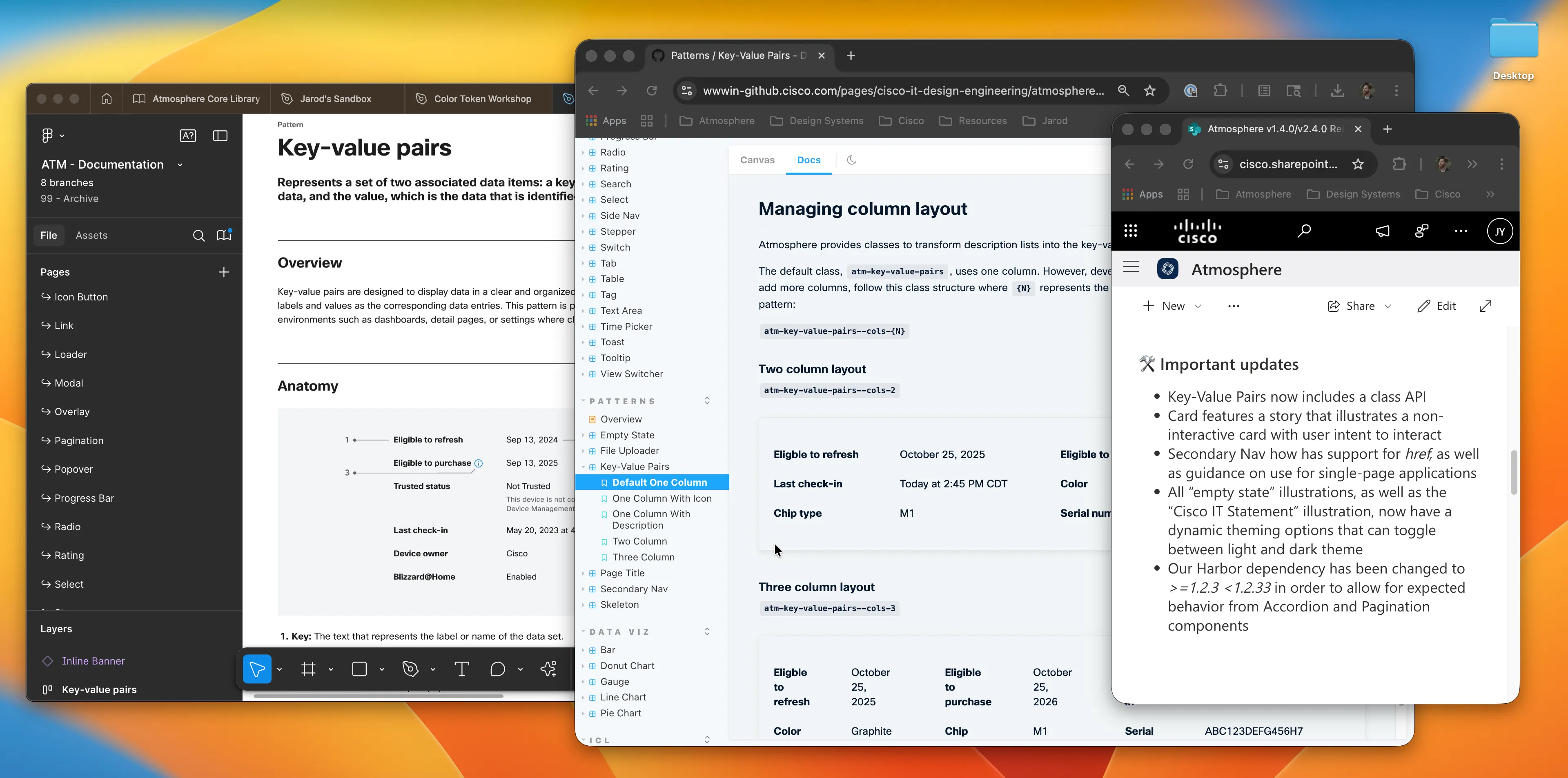 Our documentation was fragmented across three platforms: Figma for design specs, Storybook for developers, and SharePoint for everything else. Ironically, the design system had no single source of truth. Updating docs in one place often meant a need to update them elsewhere, inevitably leading to inconsistencies and conflicting guidance. Those gaps were eroding confidence in the system, and leading to growing documentation debt.